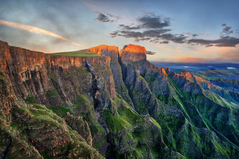 This majestic South African mountain range, the Drakensberg, a breathtaking natural wonder and a UNESCO World Heritage Site, is ready to be explored. It reaches impressive heights, with its highest peaks soaring to around 3,482 metres (11,420 feet) above sea level. This mountain range boasts the most exquisite views as far as the eye can see.