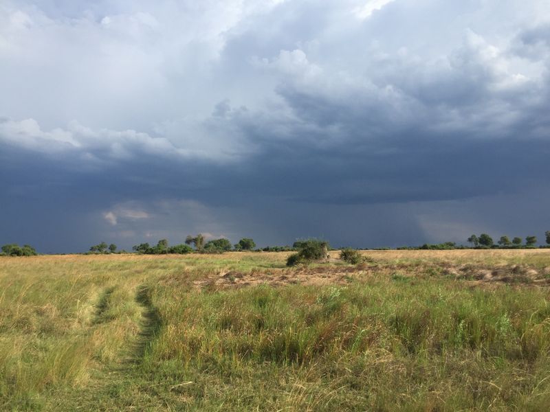 We were sitting on the vehicle watching a huge troop of baboons playing on the grass, fish eagles calling above and there seemed to be a nervous energy amongst the troop as storms clouds built and the thunder and lightning began. A mother rhino then walked onto the grass with her baby calf, literally a few days old, right in front of us. We stayed with them for what seemed an age and when she decided to leave, we watched her meet up with about 8 other mothers and babies.