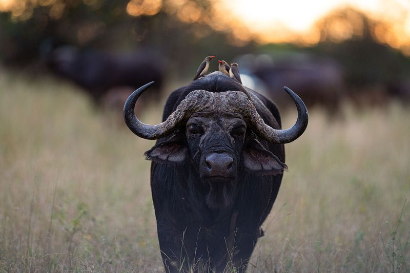 The oxpecker does more than just hitch a ride here. This relationship is a beautiful example of the intricate connections in nature. The birds feast on parasites such as fleas and ticks, while the buffalo gets a good clean.